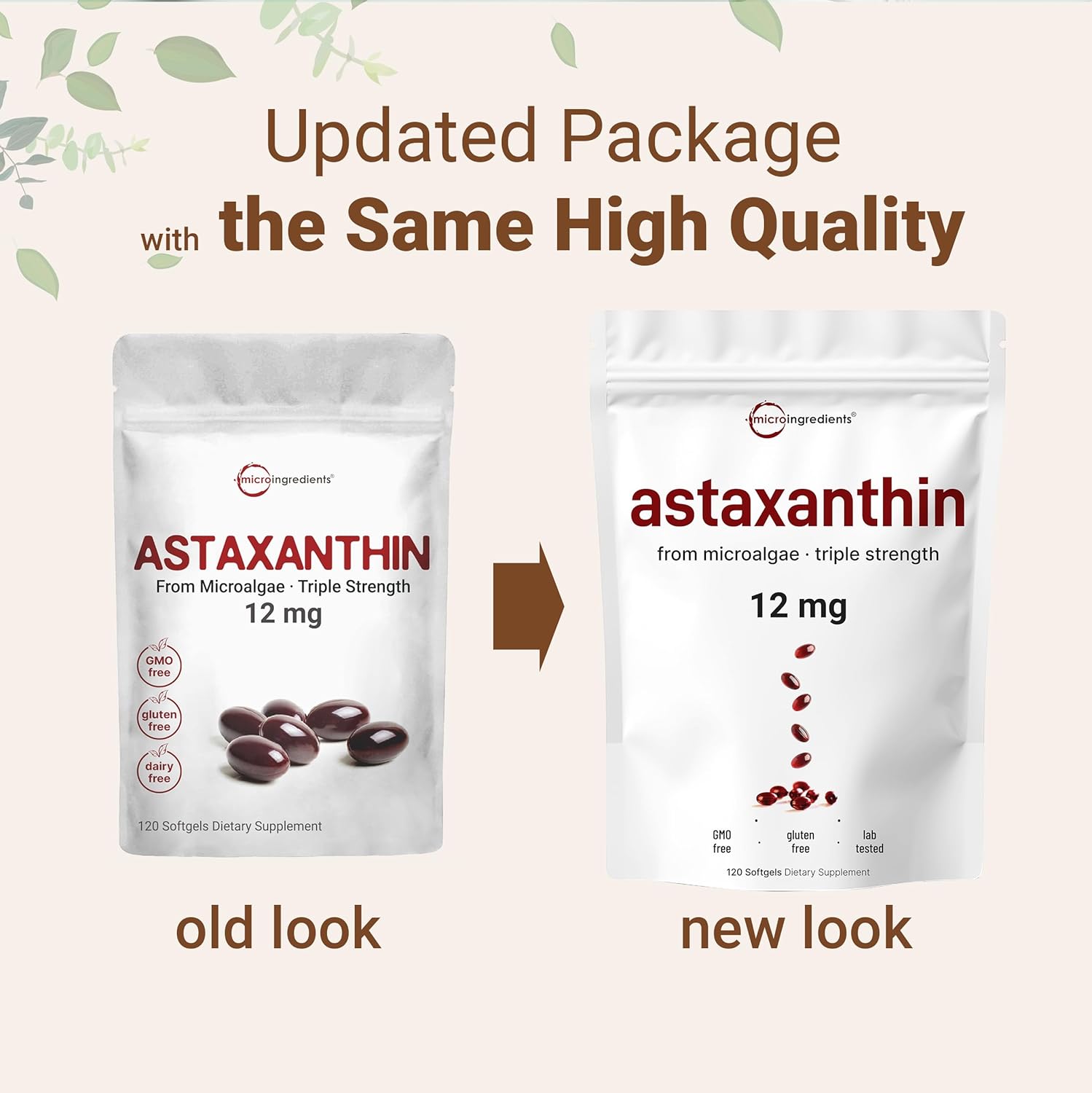 - Micro Ingredients offers max strength Astaxanthin softgels, offering a high potency of 12mg natural astaxanthin per serving. Each one-a-day softgel provides up to a 120-day supply.