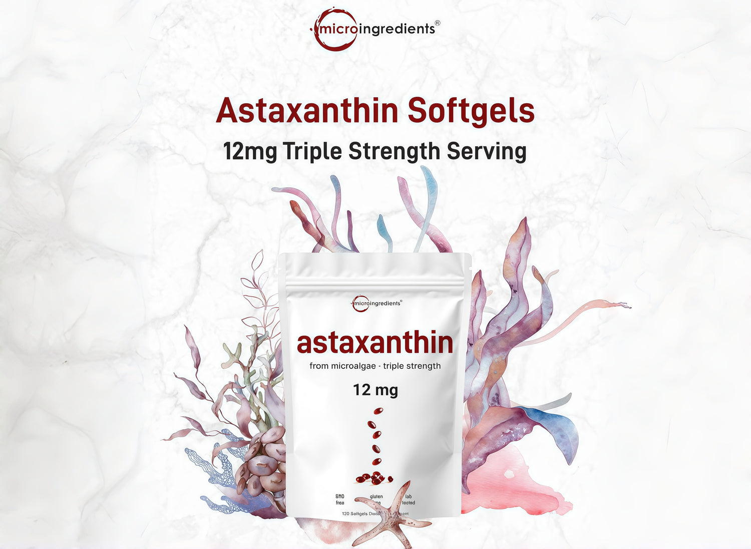 - Micro Ingredients offers triple strength Astaxanthin 12mg softgels, delivering carotenoids sourced from Haematococcus Pluvialis microalgae.